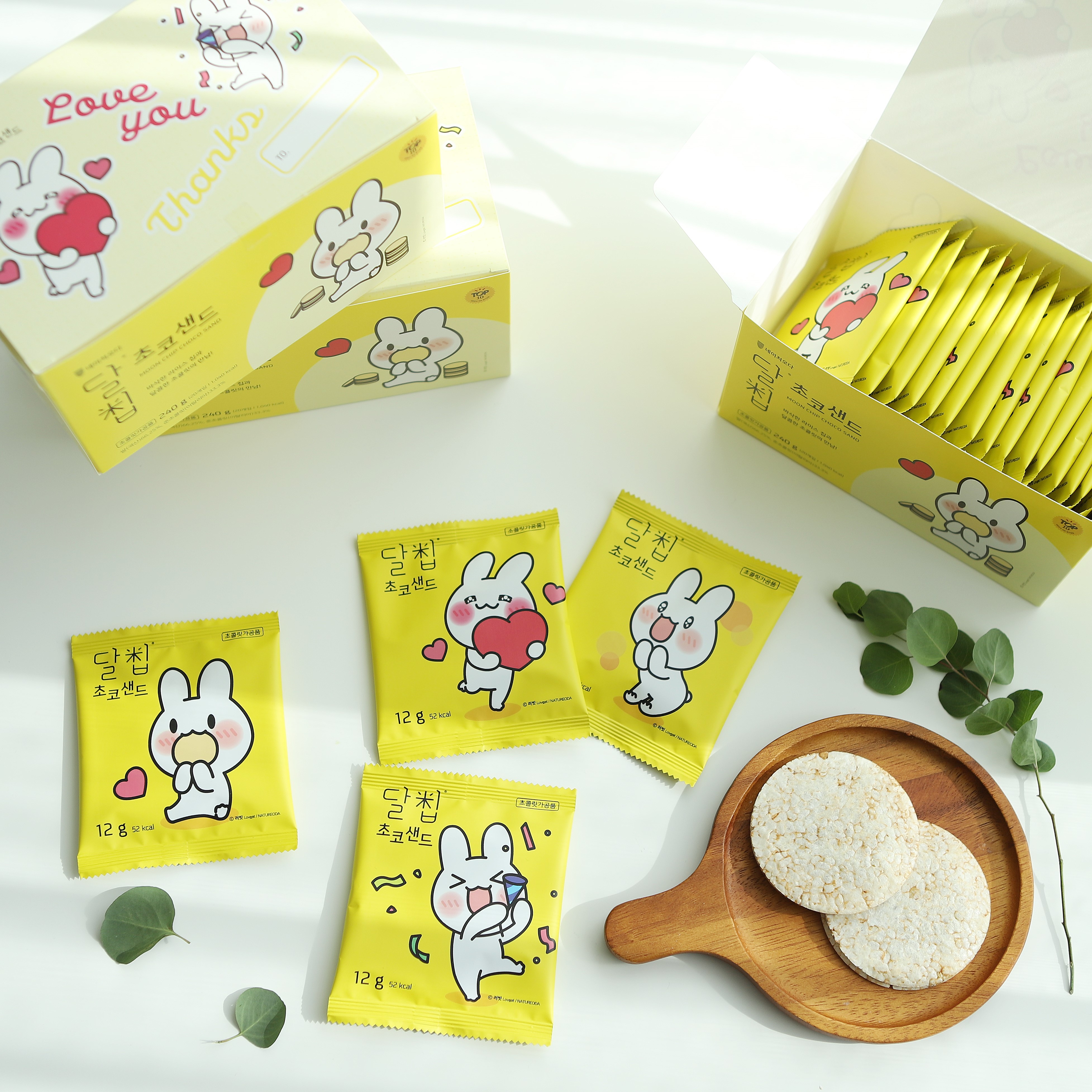 | Product description | It is a rice snack that resembles a full moon, made with chocolate between 1mm-thick rice chips made from organic rice. This product has a crispy texture and a savory, sweet taste. It is a snack loved by children and women in their 20s to 40s with its cute character packaging and taste. |