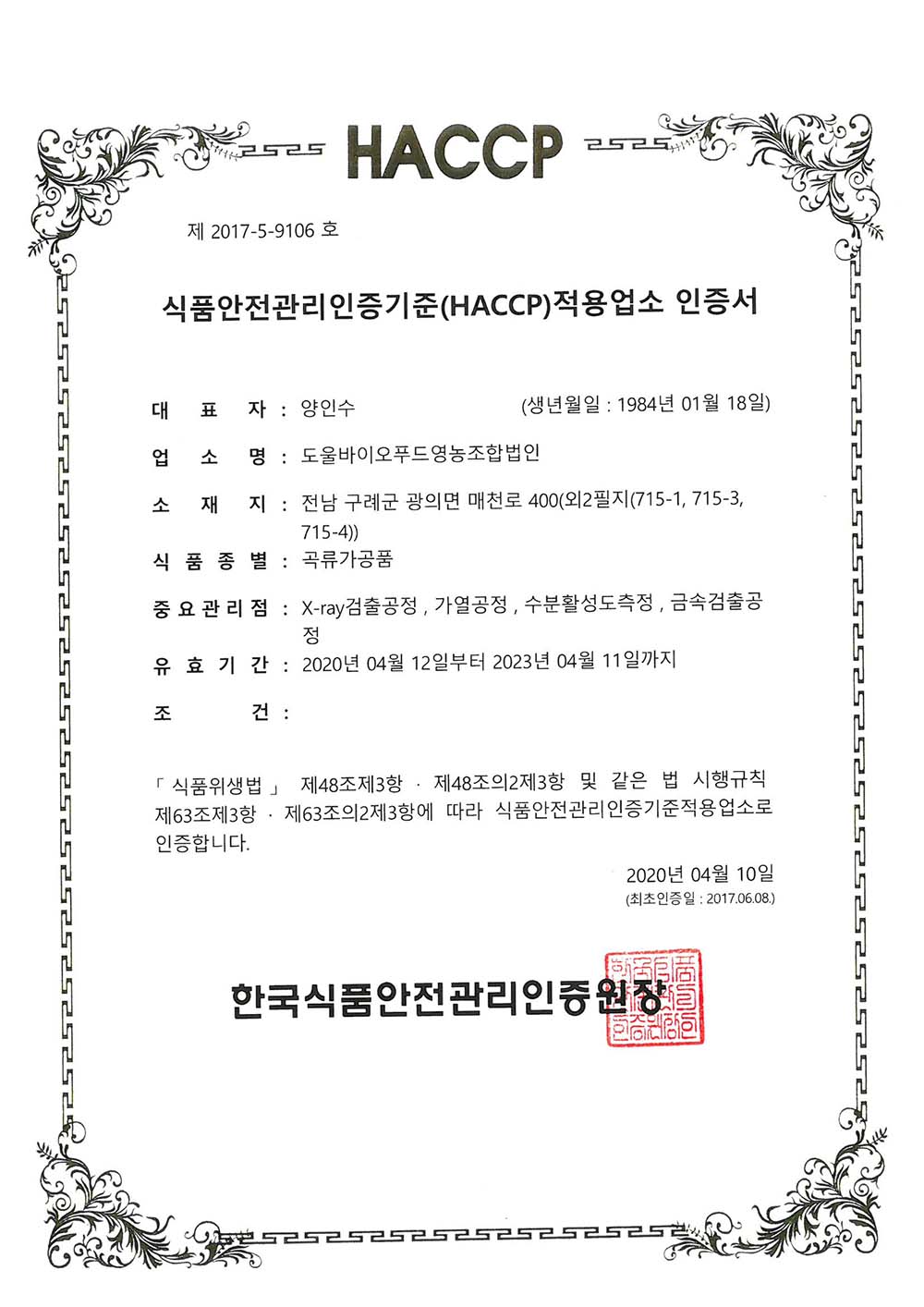 2017. HACCP certification for grain processed products