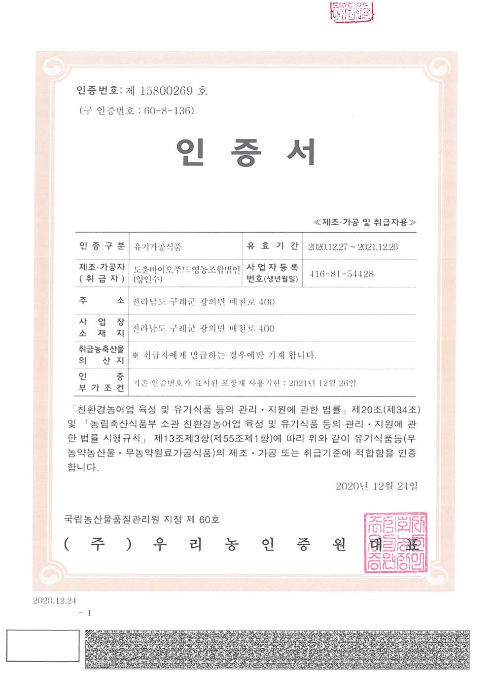 Dowul Bio Food CO., Ltd., produces cereals and snacks using organic agricultural products.
