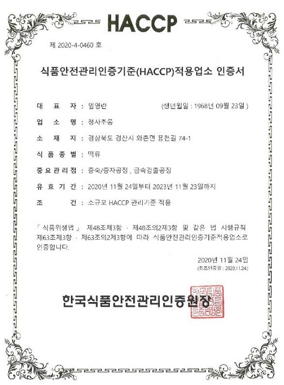2013. 09. 25. Business Registration for Cheongsa Chorong